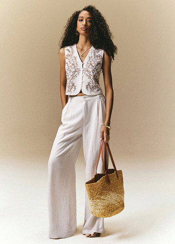 Цвет Кремовый / Фасон Брючный / Стиль Праздничный, Деловой, Кэжуал / Узор Однотонный / Материал Лен, Вискоза