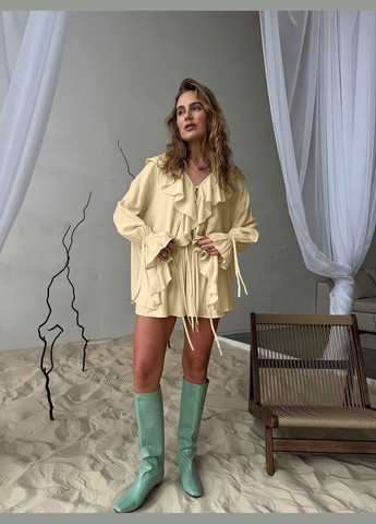 ❗️❗️❗️ПЕРЕД ЗАКАЗОМ ОЗНАКОМТЕСЬ С ЗАМЕРами НИЖЕ❗️❗️❗️ Кофта ОГ 120/124 см Длина рукава от шеи 72 см Длина по спинке 65 см Шорты ОТ 62-72/66-76 см ОБ 100/104 см Длина по краю 36 см. Длина шаг/шва 7.5 см Легкий женский костюм из жатого льна – воплощение нежности и стиля. Комплект состоит из воздушной блузы с романтическими воланами и мини-шорт со шнуровкой, что придает образу непринужденного шарма. Пышные рукава и акцент на талии формируют изящный силуэт, а натуральная ткань дарит комфорт даже в самые жаркие дни. Этот костюм – идеальный выбор для вечерних прогулок, отдыха на море или стильных летних встреч. Создавай легкий, расслабленный, но при этом изысканный образ каждый день.