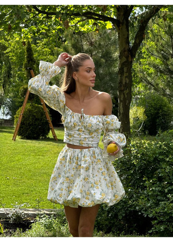 Костюм SANTORINI – легкость, комфорт и стиль в каждом движении. Идеален для жарких летних дней, путешествий, отдыха на море или повседневных прогулок. Благодаря натуральному хлопку костюм приятен к телу, дышит и обеспечивает максимальный комфорт. Комплект состоит из кроп-топа и легкой юбки, которые вместе создают нежный силуэт. Подробное описание Материал: натуральный хлопок — мягкий, легкий и дышащий. Топ: короткий кроп-топ свободного силуэта, комфортно садится на любую фигуру. Юбка: легкая, струящаяся, обеспечивает свободу движений. Посадка: универсальная – размер one size, подходит на XS–L. Принты: сердца розовые, сердца красные, розы желтые, мелкие синие розы Характеристики Тип изделия: летний женский костюм (топ + юбка) Материал: 100% хлопок Размер: one size Сезон: лето Стиль: повседневный, пляжный, курортный