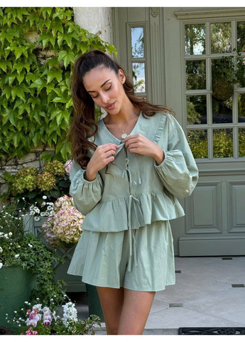 Характеристики: Материал: 100% хлопок Размер: S/L Цвет: жемчужный, пудра, черный, оливка, молоко, масло Комплект состоит из блузы с воротником и шорт, которые визуально напоминают юбку Особенности и характеристики: натуральная хлопчатобумажная ткань обеспечивает комфорт и приятные тактильные ощущения; блуза имеет воротник и аккуратный крой, подчеркивающий женственность; шорты с рюшами создают эффект юбки, придавая легкость и романтичность образу; костюм легко комбинируется с разной обувью и аксессуарами, подходит для прогулок и торжеств; свободный крой изделия не сковывает движений и гарантирует удобство в ношении. Уход: ручная или деликатная машинная стирка при температуре до 30 °C утюжка с отпариванием при средней температуре не отбеливать химическая чистка не рекомендуется Изысканный костюм ASEL сочетает элегантную блузу на завязках, с воротником и рюшами и шорты, стилизованные. Костюм идеально подходит для летних прогулок, праздничных мероприятий или стильных повседневных лугов.