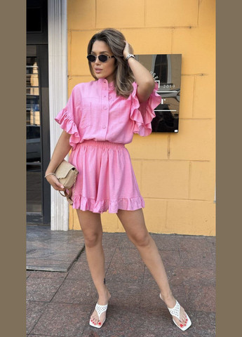 Цвет Розовый / Фасон С шортами / Стиль Праздничный, Повседневный / Узор Однотонный / Материал Лен, Шелк