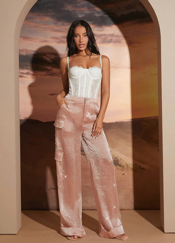 Цвет Светло-розовый / Материал Полиэстер, Органза / Фасон Карго / Высота посадки Высокая талия / Узор Однотонный