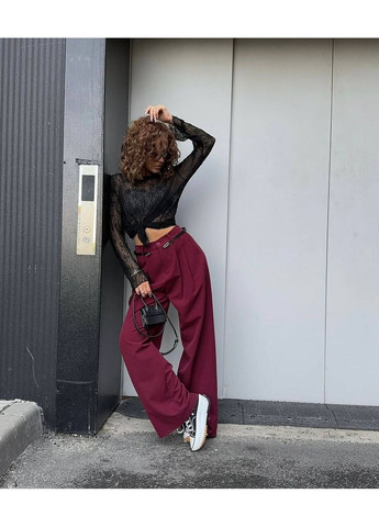 Цвет Бордовый / Материал Костюмная / Фасон Палаццо / Высота посадки Высокая талия / Узор Однотонный