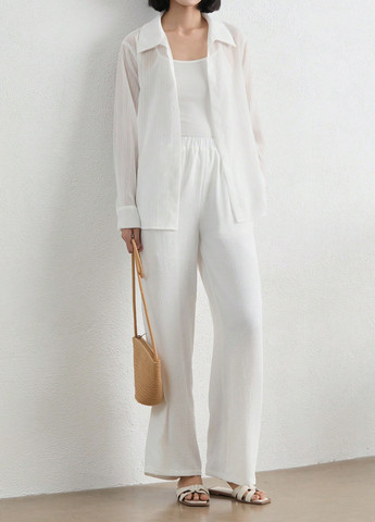 Цвет Белый / Фасон Брючный / Стиль Праздничный, Деловой, Кэжуал / Узор Однотонный / Материал Полиэстер