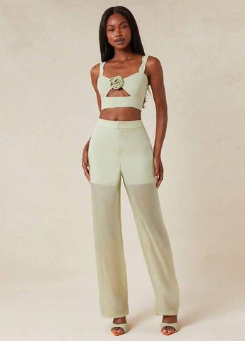 Цвет Светло-зеленый / Материал Полиэстер, Шифон / Фасон Прямые / Высота посадки Высокая талия / Узор Однотонный