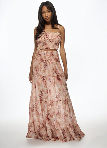 Этот комплект MISSGUIDED состоит из укороченного топа и макси-юбки. Верхняя часть представляет собой топ на подкладке с тонкими бретельками. Юбка – многоярусная макси-юбка с цветочным принтом по всей поверхности. Уход: машинная стирка или профессиональная химчистка.