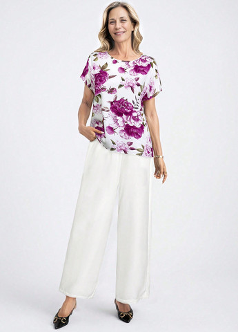 Цвет Белый / Фасон Брючный / Стиль Праздничный, Кэжуал / Узор Цветочный / Материал Полиэстер