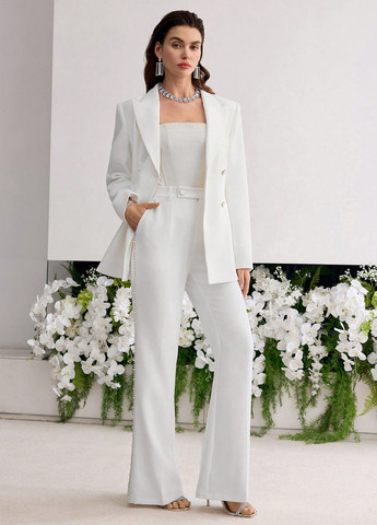 Цвет Светло-бежевый / Фасон Брючный / Стиль Праздничный, Деловой / Узор Однотонный / Материал Полиэстер