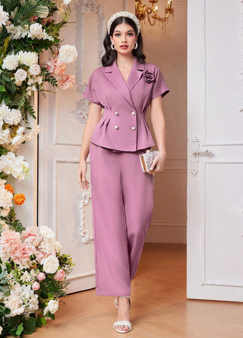 Цвет Лиловый / Фасон Брючный / Стиль Праздничный, Кэжуал / Узор Однотонный / Материал Полиэстер