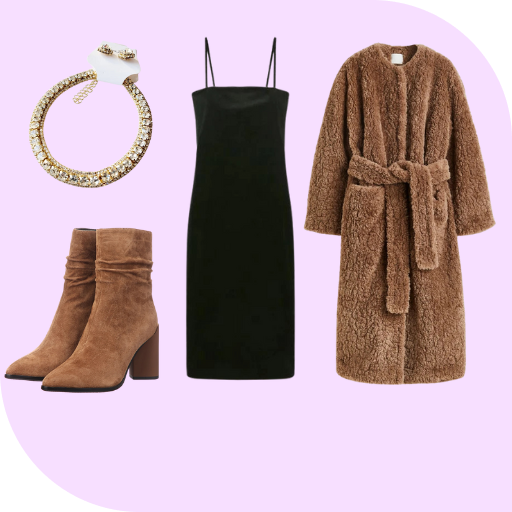 Можно выбрать более нарядный вариант, если ты не будешь праздновать дома, выбирая блестящие металлические ткани в оттенках зеленого, коричневого или золота. Женщинам можно выбрать платье с пайетками или костюм из шелковой ткани, дополнив образ золотыми туфлями, босоножками или коричневыми ботильонами. Мужчинам подойдет коричневый костюм с минималистичными аксессуарами, например бабочкой или стильными часами.