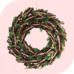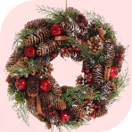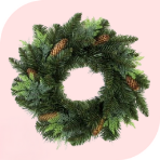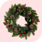 • Венки: Натуральные венки из еловых веток, шишек и ягод или искусственные можно приобрести у HVOYA, Kvazar, Vela и других производителей на сайте Каста.
