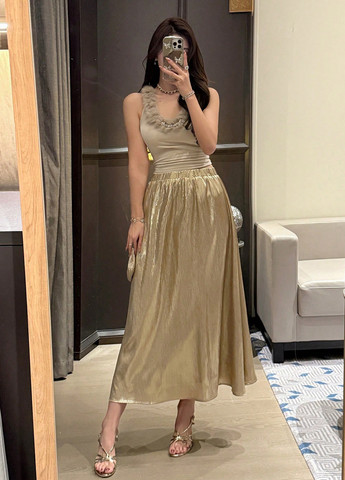 Цвет Золотистый / Фасон Клеш / Высота посадки Средняя талия / Длина изделия Макси / Материал Полиэстер