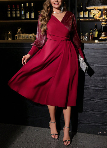 Материал Полиэстер / Цвет Темно-красный / Фасон На запах / Длина изделия Миди и ниже колена / Стиль Праздничный, Вечерний