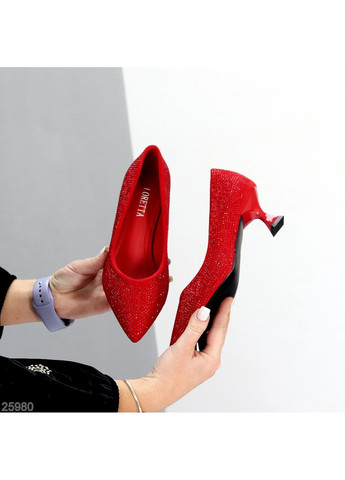 Элегантные красные туфли "Verro" из экозамши, декорированные стразами. Внутренняя часть из экокожи обеспечивает комфорт. Подходят для средней и узкой стопы. Каблук 5 см.