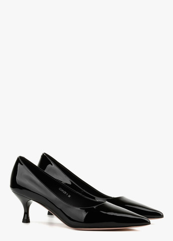 Черные туфли-лодочки на удобном каблуке 5 см изготовлены из натуральной лакированной кожи. Полнота модели: средняя.