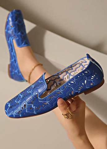 Модные женские туфли на плоской подошве с вышивкой. Квадратный носок и подошва из термопластичной резины (ТЭП). Подходят для различных случаев, как для праздников, так и для повседневной носки. Верх и подкладка изготовлены из искусственной кожи. Цвет: синий.