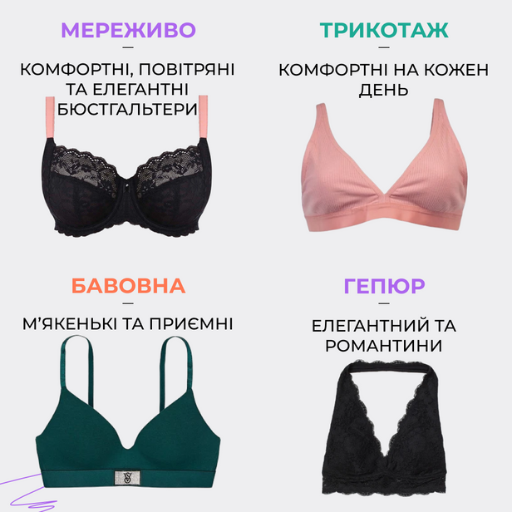 - Нежные, тонкие лифчики, бюстики без бретелек, бралеты подойдут под конкретные виды одежды: легкого платья, короткого топа и т.д. Идеальный вариант на тёплые месяцы года.