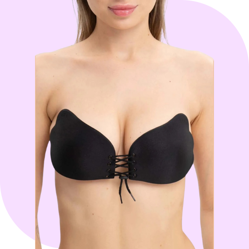 - Невидимые бюстгальтеры.Идеальный выбор для нарядов с глубоким декольте, открытыми спинами или тонкими тканями. Такой бра обеспечивает поддержку груди, но при этом остается незаметным под одеждой. В качестве альтернативы под такую одежду используют пестис, тейпы и наклейки.