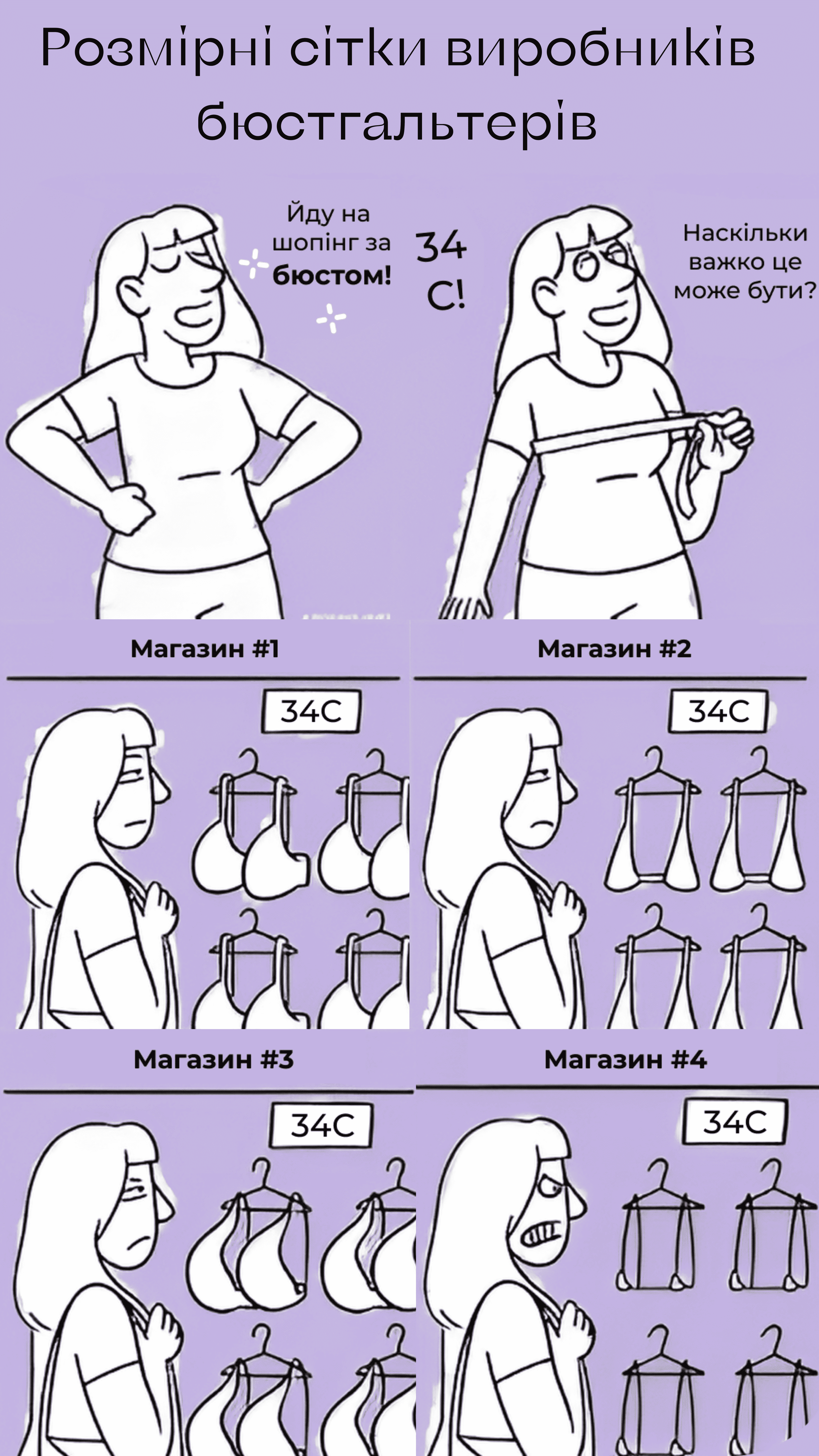 Начнем с базы. Тебе нужно измерить размеры. Даже если ты когда-то уже делала эти замеры – их следует делать регулярно, поскольку в зависимости от возраста, типа фигуры, образа жизни, стресса, гормонального фона и т.п., твой размер может меняться в течение жизни. Это совершенно нормально!