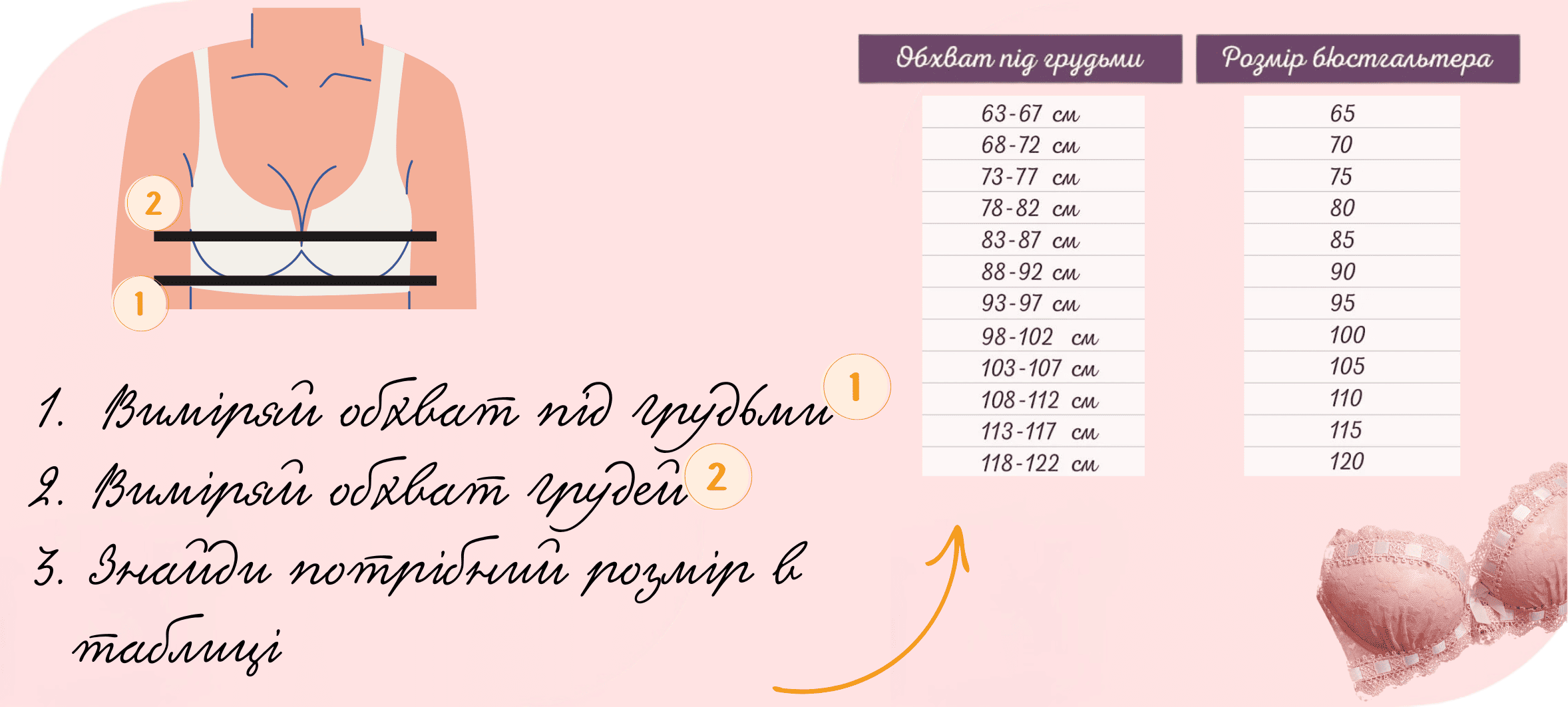 Это определит размер резиночки – пояса бюстгальтера. Она должна надежно поддерживать твою грудь, но не слишком крепко сжимать. Замеры рекомендуют делать на выдохе, опустив плечи.