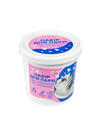 Набор для творчества Strateg: создание 3D слипка рук для пара Набор для создания объемного слипа рук — это уникальная возможность зафиксировать теплые чувства в виде трехмерной фигурки. Такой слипак станет символом близости, доверия и сотрудничества между двумя людьми. Входящий в комплект: Пластиковое ведерко-упаковка для замеса материала; Гипс высокого качества для формирования слипка; Гелевая смесь, обеспечивающая точное воспроизведение деталей; Деревянные зубочистки – 2 штуки для удобного нанесения и работы с материалом; Одноразовые полиэтиленовые перчатки – 1 пара для сохранения чистоты во время работы; Инструкция с подробными шагами для создания слипка; Специальный скат для защиты рабочей поверхности. Преимущества набора для создания 3D слипка: Простота в использовании. После внимательного ознакомления с инструкцией процесс создания слипка не вызовет трудностей даже у новичков. Качество материалов. Гипс и гелевая смесь обеспечивают четкое и долговечное воспроизведение формы рук. Безопасность. Все элементы набора безопасны для использования, а перчатки помогают избежать загрязнений. Оригинальный подарок. Результат творчества станет уникальным сувениром, который сохранится на долгие годы. Размер готового слипка: высота – 18 см, длина – 17,5 см. Этот набор открывает возможность создать настоящее объемное произведение искусства, которое отражает особые эмоции и связь между двумя людьми. Процесс работы захватывает и позволяет провести время вместе, получая незабываемые впечатления. Важно!!! Отправка нескольких товаров не всегда осуществляется с одного склада. Ваш заказ может быть отправлен из разных городов, если необходимые позиции находятся на разных складах. Отправка одной посылкой возможна только в том случае, если все заказанные товары есть в наличии на одном складе. Если ваш заказ будет отправлен несколькими посылками, наш менеджер обязательно сообщит вам об этом при подтверждении заказа по телефону. Этот товар находится на складе: Склад игрушек №4 Характеристики, комплектация, вид и цвет товара могут изменяться производителем без уведомления. Магазин не несет ответственности за подобные изменения.