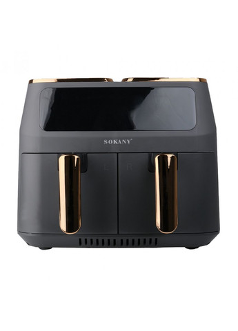 Мечтаете о вкусной, но здоровой еде? Аэрофритюрница SOKANY SK-10005 - это электрический аэрогриль, который поможет готовить любимые блюда с минимальным количеством жира и масла. Этот современный прибор имеет мощность 2400 Вт, что обеспечивает быстрый нагрев и равномерное приготовление пищи. Благодаря регулятору температуры вы можете выбрать оптимальный режим для любого блюда, от хрустящих овощей до сочного мяса. Встроенный таймер на 60 минут гарантирует безопасность и предотвращает пересушивание или пережаривание. Два 5-литровых отделения позволяют готовить различные блюда одновременно. Аэрофритюрница использует инновационную технологию циркуляции горячего воздуха, что делает приготовление пищи без масла возможным. Сенсорное управление делает использование прибора простым и удобным. SOKANY SK-10005 - это отличный выбор для тех, кто хочет питаться здорово и вкусно. С ее помощью вы сможете готовить множество блюд, от фри до куриных крылышек, грибов и морепродуктов. Современный дизайн и удобство использования делают эту аэрофритюрницу отличным дополнением к вашей кухне. Преимущества аэрогриля SOKANY: Мощность 2400 Вт. Высокая мощность аэрофритюрницы обеспечивает быстрый нагрев и равномерное приготовление различных блюд. Регулятор температуры. Аэрофритюрница оснащена регулятором температуры, позволяющим выбрать оптимальный режим приготовления. Это дает возможность готовить разнообразные блюда — от хрустящих овощей до сочного мяса. Таймер. Встроенный таймер позволяет установить время приготовления до 60 минут, после чего аэрофритюрница автоматически отключится, обеспечивая безопасность и предотвращая пересушивание или пережаривание блюд. Два отделения по 5 л позволяют одновременно готовить разные блюда. Просторный объем аэрофритюрницы позволяет готовить большие порции пищи для всей семьи или гостей. Приготовление без масла с помощью циркуляции воздуха. Инновационная технология аэрофритюрницы позволяет готовить блюда без масла, благодаря циркуляции горячего воздуха внутри камеры приготовления. Это способствует получению здоровой и хрустящей текстуры блюд. Сенсорное управление. Аэрофритюрница оснащена сенсорным управлением, что делает настройку режимов готовки простой и удобной. Характеристики аэрофритюрницы двойной: Тип: аэрофритюрница; Емкость: 10 литров; Мощность: 2400 Вт (2х1200 Вт); Номинальное напряжение: 220 В-240 В; Материал корпуса: пластик; Управление: сенсорное; Таймер: есть; Особенности: 2 отделения по 5 литров.