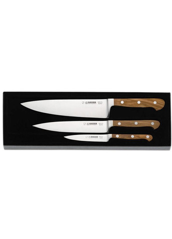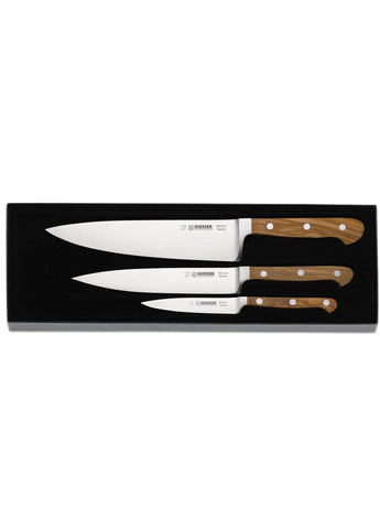 Характеристики: Серия: BestCut; Материал лезвий: кованая хромомолибденовая сталь; Материал ручек: оливковое дерево; Ручка эргономичной формы; Ручка соединена тремя заклепками из нержавеющей стали, слегка закруглена, экологически чистая; Цвет: светло-коричневый; В кухонный набор входят нож для чистки овощей 100 мм Giesser BestCut (8640 10 o); Кухонный нож универсальный 150 мм Giesser BestCut (8670 15 o); Шеф кухонный чем 200 мм Giesser BestCut (8680 20 o); Страна регистрации бренда: Германия; Материал рукояток: Оливковое дерево; Производитель: Giesser; Страна-производитель товара: Германия; Материал лезвия: Нержавеющая сталь; Количество в наборе, шт: 3; Цвет рукояти: Светло-коричневый; Комплектация: Нож для чистки овощей 100 мм Giesser BestCut (8640 10 o) Кухонный нож универсальный 150 мм Giesser BestCut (8670 15 o) Кухонный Шеф нож 200 мм Giesser BestCut (8680 2 Материал: Нержавеющая марка: Цвет: Светло-коричневый;