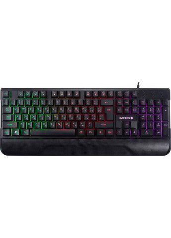 Игровая клавиатура GamePro Headshot GK398 GamePro Headshot – проводная клавиатура мембранного типа, выполненная из прочного ABS пластика. Практически бесшумная в работе – не будет отвлекать от увлекательной игры. Клавиатура оснащена подставкой для рук, чтобы они не уставали во время длительного геймплея и прорезиненными ножками, препятствующими скольжению по поверхности. Подключается через USB-кабель длиной 1.5 м по технологии Plug and Play без дополнительного ПО. Клавиатура поддерживает Windows 10/8/7/Vista/XP и более поздние версии, MacOs и Linux. Также есть возможность блокировки клавиши Win в игровом режиме во избежание неприятных неожиданностей. Девайс оборудован красивой RGB подсветкой с режимом дыхания (плавная пульсация светодиодов) – ваша игра будет комфортной даже в темное время суток. Блокировка клавиши Win в игровом режиме позволяет избежать ненужных сбоев в самый ответственный момент. Удобная подставка – ваши кисти не будут уставать во время длительного геймплея. Яркая RGB подсветка с режимом «дыхания» сделает вашу игру более атмосферной.