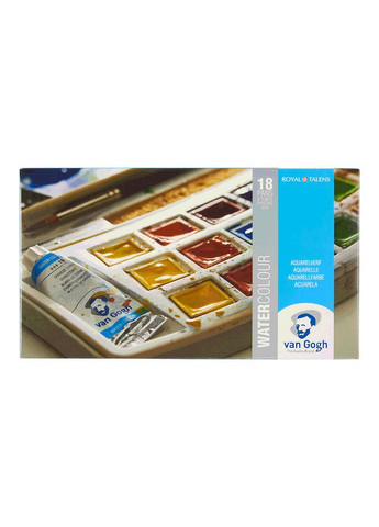 Набор акварельных красок “Van Gogh” Botanical Colours 24 цвета в кюветах, кисточка, в пластиковом пенале. Акварель Van Gogh отличается яркостью и интенсивностью цвета. Вся палитра Van Gogh имеет высокую степень светостойкости – сохраняет яркость в течение длительного периода времени. Краска легко ложится, а благодаря чистоте пигмента ее можно легко смешать и при необходимости размыть, достигая тем самым требуемого эффекта. В результате Вы можете достигать особой выразительности цвета. Краски: Белила интересный покровный (106), Пермь. лимонный светлый (254), Прозрачный желтый средний (272), Индийский желтый (244), Пирольный оранжевый (278), Пермь. красный светлый (370), Пермь. красный темный (371), Кармин (318), Хинакридон розовый (366), Пермь. красно-фиолетовый (567), Пермь. сине-фиолетовый (568), Хинакридон фиолетово-красный (592), Хинакридон фиолетово-синий (593), Ультрамарин темный (506), Церулеум голубой ФЦ (535), Прусская лазурь (508), Сошник зеленый (623), Азометин зелено-желтый (296), Сиена натуральная (234), Сиена жженая (411), Умбра жженая (409), Ван Дик коричневый (403), Нейтральный оттенок (715). Производитель: "Royal Talens", Нидерланды.