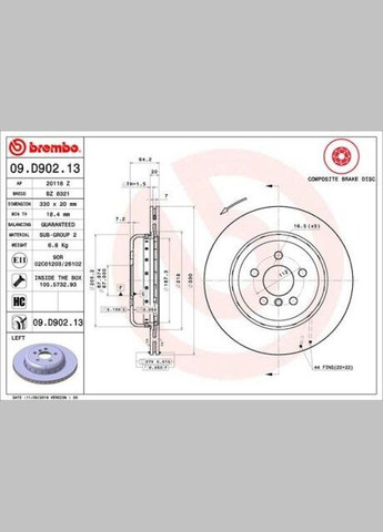 Диск гальмивний ПЕРЕДН MB (W205) 07/13-,T-MODEL (S205) 09/14-,(W213) 01/16- КОД ТОВАРА BM 09.D528.13 АРТИКУЛ И ПРОИЗВОДИТЕЛЬ ТОВАРА 09.D528.13 (BREMBO) Характеристика Свойство Висота 63 мм Диаметр центрування 69 мм Додатковий вириб/додаткова информация 2 с винтами Зовнишний диаметр 330 мм Количество отверстий 5 Мин. товщина 29,4 мм Обработка з високим вмистом вуглецю Поверхность с покрытием Тип тормозного диска Гальмивний диск з двох компонентив Тип тормозного диска зи внутришньою вентиляциею Товщина гальмивного диска 32 мм КАТАЛОЖНЫЕ НОМЕРА АНАЛОГОВ Производитель Артикул Производитель Артикул Производитель Артикул ATE 24013203012 BOSCH 0986479G43 MERCEDES-BENZ 0004212712 MERCEDES-BENZ A0004212712 ПРИМЕНЯЕМОСТИ Марка / Модель Марка / Модель Марка / Модель Диск Mercedes-Benz C-CLASS (W205) Диск Mercedes-Benz C-CLASS T-Model (S205) Диск Mercedes-Benz C-CLASS Купе (C205) Диск Mercedes-Benz C-CLASS Кабриолет (A205) Диск Mercedes-Benz CLS (C257) Диск Mercedes-Benz E-CLASS (W213) Диск Mercedes-Benz E-CLASS T-Model (S213) Диск Mercedes-Benz E-CLASS All-Terrain (S213) Диск Mercedes-Benz E-CLASS Купе (C238) Диск Mercedes-Benz E-CLASS Кабриолет (A238)