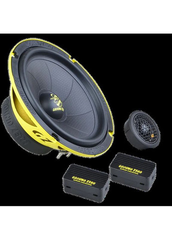 Это акустическая система среднего диапазона от бренда Ground Zero, используемая для фронта и воспроизводящая весь спектр частот для формирования правильной сцены с хорошим качеством. Она двухкомпонентна и состоит из медбасового динамика, шелкового твиттера и пассивного кроссовера. Долговременная номинальная мощность RMS динамика – 120 Вт, а максимальная заявленная мощность – 190 Вт. Уровень чувствительности 90 дБ/Вт. Диапазон воспроизводимых частот от 35 до 25000 Гц. Разделение полос осуществляется с помощью кроссовера, он выделяет из звукового сигнала определенную полосу, предназначенную для конкретного излучателя, не допустив попадания на него «лишних» частот. Частота среза кроссовера (12 дБ/окт) 4300 Гц. Динамики низкочастотные (НЧ) типоразмером 165 мм (6.5 дюйма). Монтажные размеры: диаметр 142,5 мм и глубина 68 мм. Корзина стальная, крепкая и устойчивая к возникновению резонанса. Диффузор динамика алюминиевый, черного цвета, отличается легкостью и в тоже время жесткостью. Поэтому звучание будет более натуральным с равной подачей. Конус подвешен отцентрирован и с помощью широкого резинового подвеса. Номинальное электрическое сопротивление звуковой катушки 3 Ом, это необходимо учитывать при согласовании усилителя и нагрузке динамика. Высокочастотный (ВЧ) динамик представлен шелковым твиттером размером 25 мм (1 дюйм). Монтажные размеры: диаметр 48 мм и глубина 18 мм, это позволяет размещать их в штатных местах большинства автомобилей. Комплектация: два динамика НЧ, два твиттера, два кроссовера, необходимы крепеж и инструкция.