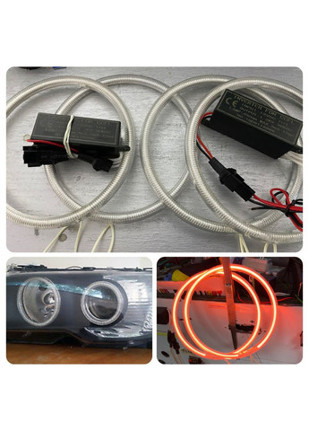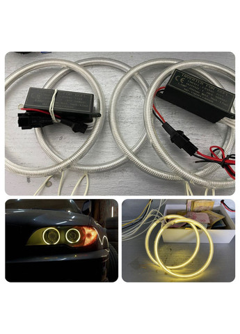CCFL Ангельские глазки на BMW E30, E32, E34 Желтые Ангельские глаза CCFL (газонаполненные) Размеры подобраны под конкретные модели. Не поделка! Полный комплект для установки: Кольца – 4 шт., Блоки розжига – 2 шт., комплект проводки, Достоинства: -не выбивают ошибку на приборные панели; -равномерное свечение, без точек и перебоев; -длительный срок эксплуатации; -низкое потребление тока; -не требовательны к температурному режиму; -виброустойчивость На оборотной стороне кольца алюминиевая пластина, выполняющая две функции: • Рассеивает свет, увеличивая яркость; • Удаляет тепло, чем продлевает срок эксплуатации. С помощью ангельских глаз ваше авто будет выделяться из серого потока машин!