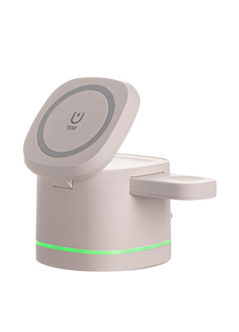 3 IN 1 WIRELESS CHARGER STAND Z3 (FOR IPHONE, AIRPODS AND APPLE WATCH) – беспроводная зарядка с модульной системой подключения (можно изменять места или уменьшать количество зарядных площадок аксессуара); – сделано для зарядки iPhone или любого Qi-совместимого смартфона, Apple Watch, Apple AirPods 2/Pro; - суммарная мощность аксессуара – 18W; - параметры тока на выходе для площадок: для iPhone/Qi-смартфонов: 5W, 7.5W, 10W Max, для Apple AirPods 2/Pro: 5W, для Apple Watch: до 5W (от кабеля). В платформе с ножкой для Apple Watch предусмотрено отверстие для зарядного кабеля (кабель в комплекте не идет). Подключение кабеля происходит через встроенный USB-A порт – зарядные платформы можно использовать как вместе, так и по отдельности; - заряжает 3 устройства одновременно; - с LED-индикатором процесса зарядки; - с защитой от короткого замыкания и скачков напряжения; - в комплекте кабель USB-C (1 м) для подачи питания на аксессуар в целом и на модули отдельно.