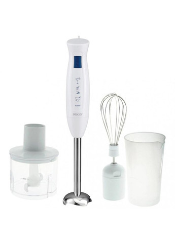 Элегантный и эргономичный дизайн Корпус ручного блендера Sogo BAT-SS-14270 изготовлен из белого пластика с эргономичным дизайном, что обеспечивает удобное и надежное удержание. Также оборудован металлической ножкой с лезвиями из нержавеющей стали. Эти особенности придают этому блендеру измельчителя элегантный и современный внешний вид. Многофункциональный Если вам нужно взбить белки, сливки или смешать ингредиенты для приготовления десерта, у вас есть веночковый миксер. Этот аксессуар изготовлен из нержавеющей стали и достаточно вставить его в опору внизу корпуса устройства, чтобы мгновенно начать пользоваться им. И не беспокойтесь: замена аксессуаров очень практична и удобна, с помощью одной кнопки и не требует никаких усилий. Очень прост в использовании Для облегчения работы блендер имеет одну кнопку скорости, удобно расположенную на корпусе устройства. Вам просто нужно держать блендер за моторный блок, поместить его в мерную чашку или другой контейнер с ингредиентами, которые нужно смешать и нажать переключатель. Этот блендер с аксессуарами идеально подходит для приготовления соусов, супов, пюре, майонеза и даже детского питания. Также пригодится для смешивания и приготовления смузи, теста для тортов и многих других рецептов. Эффективно и быстро измельчайте и смешивайте В дополнение к ручному блендеру набор дополнен измельчителем, который включает в себя емкость объемом 300 мл, крышку и очень острые лезвия из нержавеющей стали. Измельчитель идеально подходит для обработки таких продуктов, как мясо, орехи, миндаль, сыры, хлеб, лук, морковь, печенье, фрукты, чеснок и многое другое. Поместите нужное количество в контейнер, и вы получите обработанный продукт менее чем за 15 секунд. С практичным мерным стаканом и чашей для смешивания В набор входит пластиковый мерный стакан емкостью 700 мл. Этот стакан градуирован, поэтому его можно использовать для измерения объема ингредиентов или конечной смеси очень легко. Кроме того, он имеет идеальную ширину, чтобы быстрее измельчать. Прочный и долговечный блендер Корпус блока двигателя, мерная чашка, контейнер для измельчителя и соответствующие крышки изготовлены из жесткого и прочного пластика, который имеет длительный срок службы. Что касается остального оборудования, такого как ножка с лопастями, смешивающий стержень и лопасти измельчителя, они изготовлены из нержавеющей стали. С другой стороны, все использованные материалы не только крепкие, но и абсолютно безопасны для работы с пищевыми продуктами.