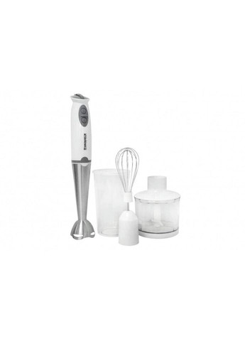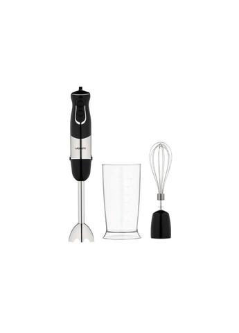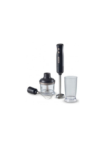Питание - 220-240В, 50Гц, Мощность 800 Вт. 2 скоростных режима работы. Регулятор скорости на корпусе. Ножи четырехлепестковые из нержавеющей стали. Пластиковый корпус со съемной ногой. Нога из нержавеющей стали. Подвесная петля. Аксессуары: чаша с измельчителем 400 мл, мерный стакан 0,6 л, венчик из нержавеющей стали, насадка для пюре, вспениватель молока.