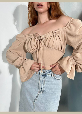 Женская блузка из легкой прозрачной ткани с объемными рукавами.