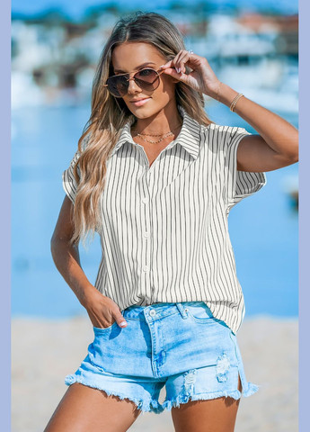Полосатая блуза с воротником на пуговицах ***Размер - M Полуобхват пояса - 49,00 см Длина изделия - 63,00 см Ширина по плечам - 57,00 см Объем груди - 102,00 см Возможно повреждение бирки