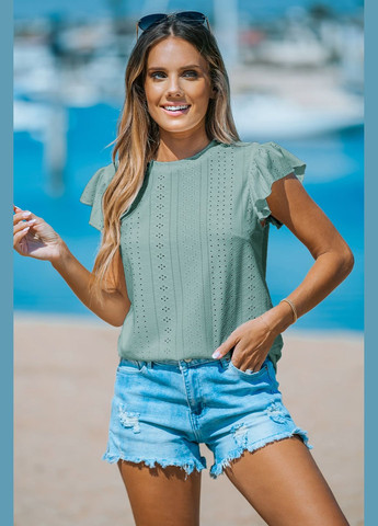 Блузка с рукавами-крылышками и квадратным вырезом цвета зеленой травы ***Размер - S Полуобхват пояса - 45,00 см Длина изделия - 58,00 см Ширина по плечам - 29,00 см Объем груди - 88,00 см Возможно повреждение бирки