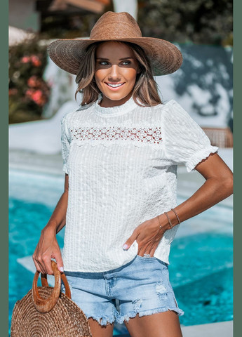 Блуза с рукавами-фонариками, украшенный оборками и вышивкой ***Размер - M Полуобхват пояса - 53,00 см Длина изделия - 55,00 см Ширина по плечам - 38,00 см Объем груди - 100,00 см Возможно повреждение бирки