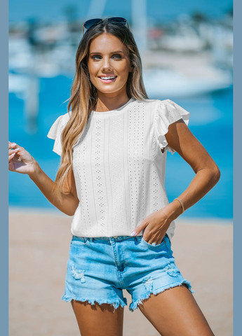 Трикотажная блуза с люверсами и рукавами-крылышками ***Размер - L Полуобхват пояса - 52,00 см Длина изделия - 57,00 см Объем груди - 104,00 см Возможно повреждение бирки