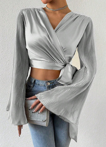 Цвет Серебряный / Фасон На запах / Стиль Вечерний, Праздничный / Узор Однотонный / Фасон рукава Вшитый