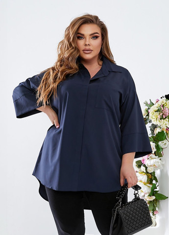 Женская блуза свободного фасона, изготовленная из приятного на ощупь софта. Благодаря своему фасону хорошо садится по фигуре. Модель имеет уникальный крой, спереди короче, а спинка удлиненная. Спущенная линия плеча добавляет легкости, а функциональный карман на груди обеспечивает удобство. Этот вариант прекрасно подходит для создания современного образа на каждый день. Обратите внимание, что указанный в описании размер совпадает с тем, что указан на этикетке товара. 50-52 р-р: ОГ 126, ОТ 117, длина блузки 82/91; 54-56 р-р: ОГ 134, ОТ 125, длина блузки 83/92; 58-60 р-р: ОГ 142, ОТ 132, длина блузки 84/93; 62-64 р-р: ОГ 150, ОТ 139, длина блузки 85/94; Замеры делались по верхней части готового изделия. ОГ - объем груди. ОТ - объем талии. ОС - объем бедер.