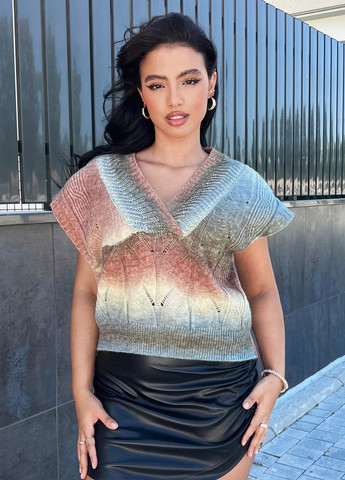 Цвет Комбинированный / Фасон На запах / Стиль Кэжуал / Узор Градиент / Фасон рукава Летучая мышь