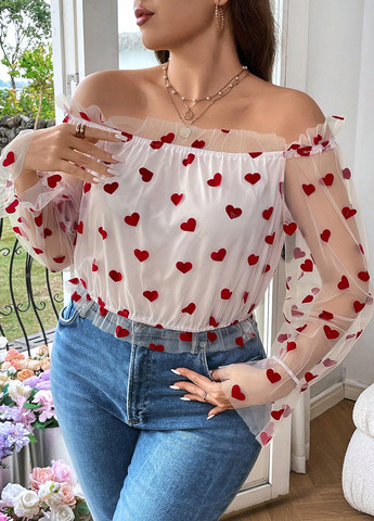 Цвет Розовый / Стиль Повседневный, Коктейльный, Вечерний, Деним, Кэжуал / Узор Сердечки / Фасон рукава Цельнокроеный