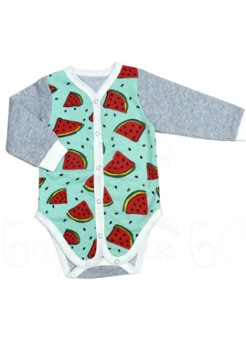 62,68,74р. - швы изделия внутренние; рукава - на эластичных манжетах; боди застегиваются на кнопки, которые расположены по центру изделия.