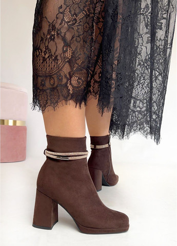 Цвет Коричневый / Состав верха Искусственная замша / Тип каблука Толстый / Декор Стразы / Застежка Молния