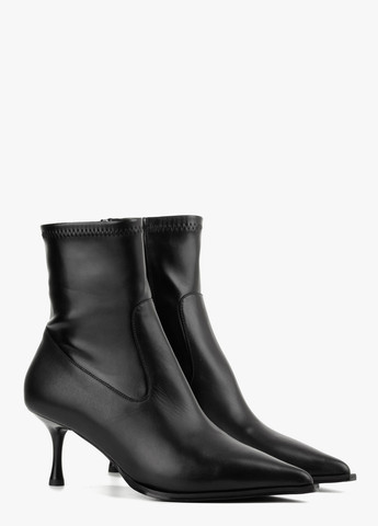 Кожаные ботильоны черного цвета польского производителя RYŁKO. Модель выполнена из натуральной лицевой кожи высокого качества. Подходят на стандартную (среднюю) полноту стопы. Внутри утеплены байкой. Подойдут на холодную осень и еврозиму. Имеют удобные и стойкие каблуки высотой 6,5 см. Застежка - молния.