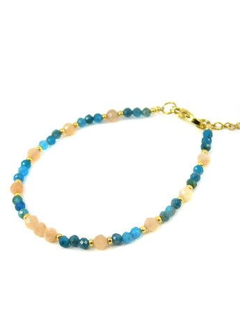 Браслет из натурального апатита — это украшение, которое поражает своим насыщенным голубовато-бирюзовым оттенком, напоминающим о морских глубинах и безоблачном небе. Каждый камень в браслете имеет уникальную текстуру, подчеркивающую его природное происхождение. Этот аксессуар на эластичной основе удобно сидит на руке, а размер 18 см делает его универсальным для большинства запястий. Он станет ярким акцентом в вашем образе, добавляя ему свежести и элегантности.