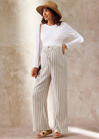 Цвет Кремовый / Материал Полиэстер / Фасон Прямые / Высота посадки Высокая талия / Узор Полоска