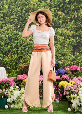 Брюки-палаццо атласные для девушки To Be Too TF15136 розовые в цветы.